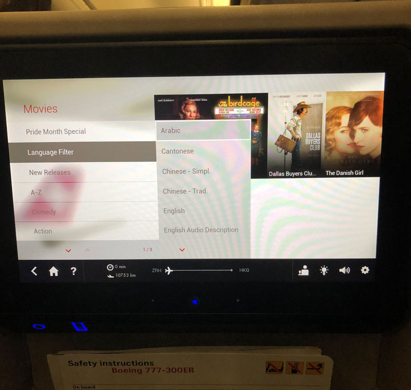 The entertainment screen is one of the biggest I have seen in economy class and has a great range of entertainment options in a range of languages. You can sort and filter the entertainment by language, making it easier to find particular movies. The only downside to the entertainment is a really long video about SWISS and Switzerland that started playing after the safety announcements and continued until after take off. Because this flight took off at 10pm most people wanted to go to sleep straight away but unfortunately, the video could not be skipped or turned off. If you want to go straight to sleep we suggest packing an eye mask for the flight.