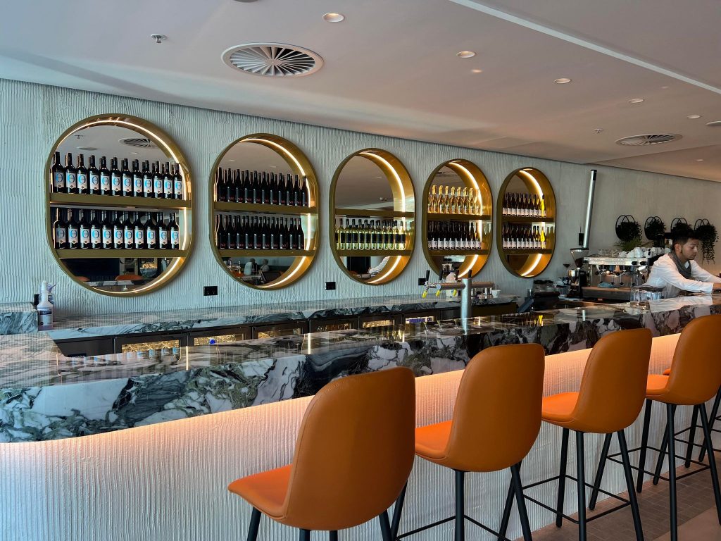 A range of bar snacks are available plus various local and international dishes. There is no alcohol service however there is a selection of non-alcoholic wine, beer and mocktails including Espresso Martini and Aperol Spritz.