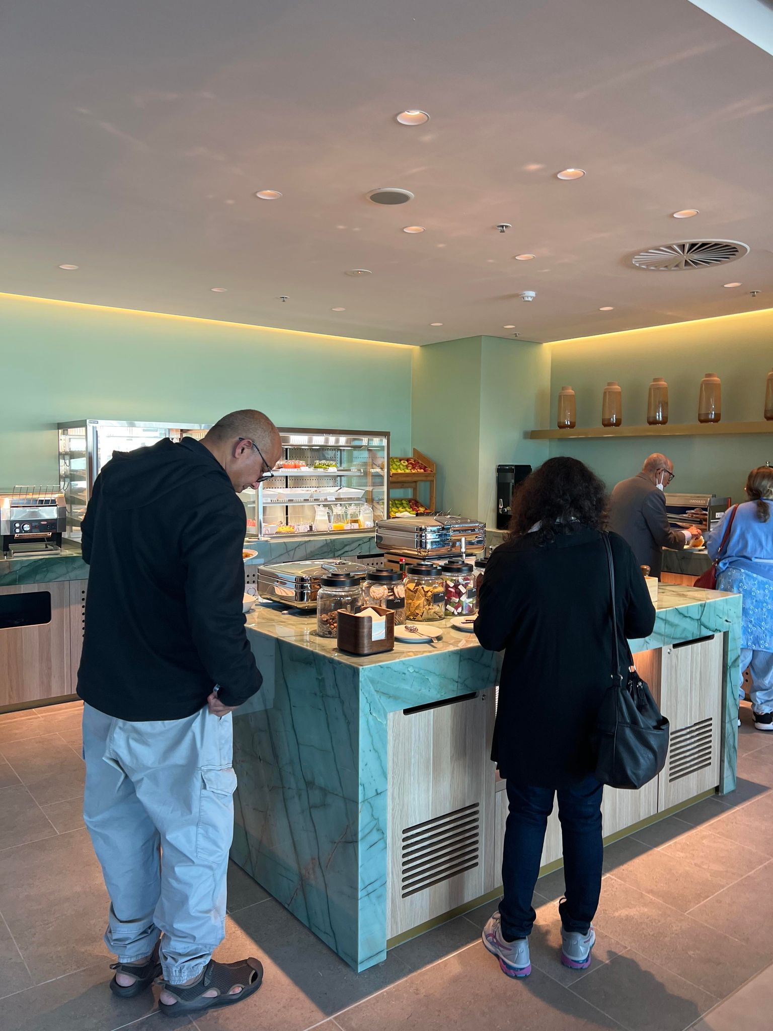 A range of bar snacks are available plus various local and international dishes. There is no alcohol service however there is a selection of non-alcoholic wine, beer and mocktails including Espresso Martini and Aperol Spritz.