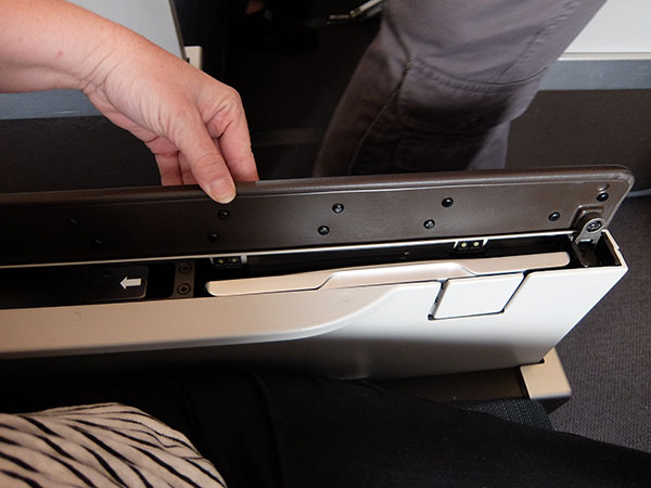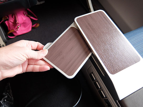 Smaller drinks table on Cathay Pacific premium economy