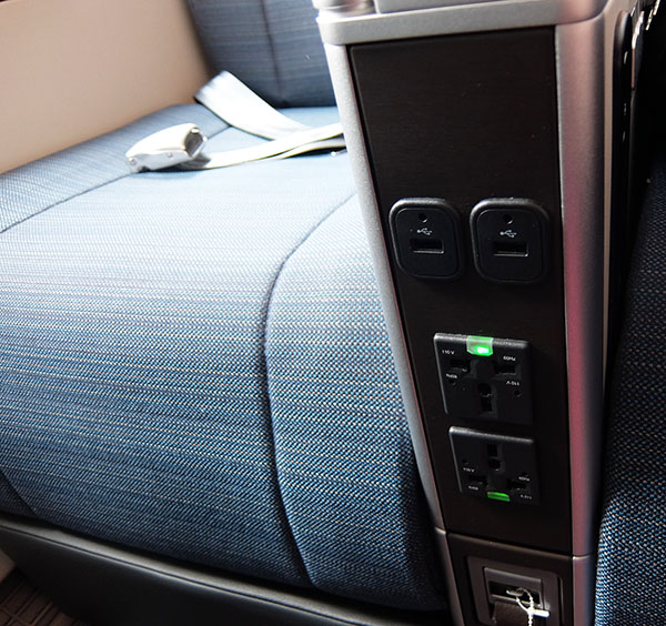 All controls for the seat and personal entertainment screen are also in the armrest. As always the StudioCX is filled with hundreds of hours on entertainment. Complete with complimentary noise cancelling headphones you are really able to sit back and relax during your flight. Even though Cathay has a huge range of entertainment available there is also a small shelf just under the screen to rest your own personal device. Charging your devices while on board is no problem with both USB and electrical plugs in the armrest.