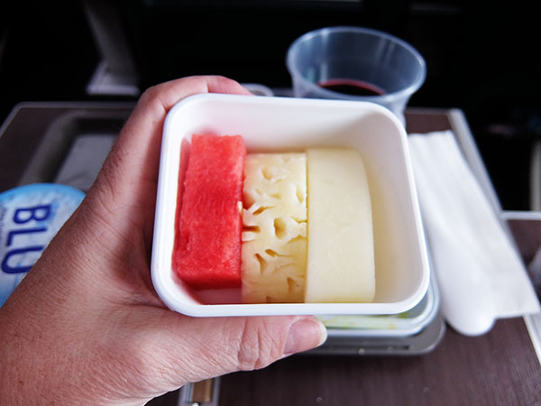 The meal service in premium economy was delicious and definitely a step up from economy. Including a hot meal, a fresh fruit selection and ice cream for dessert.