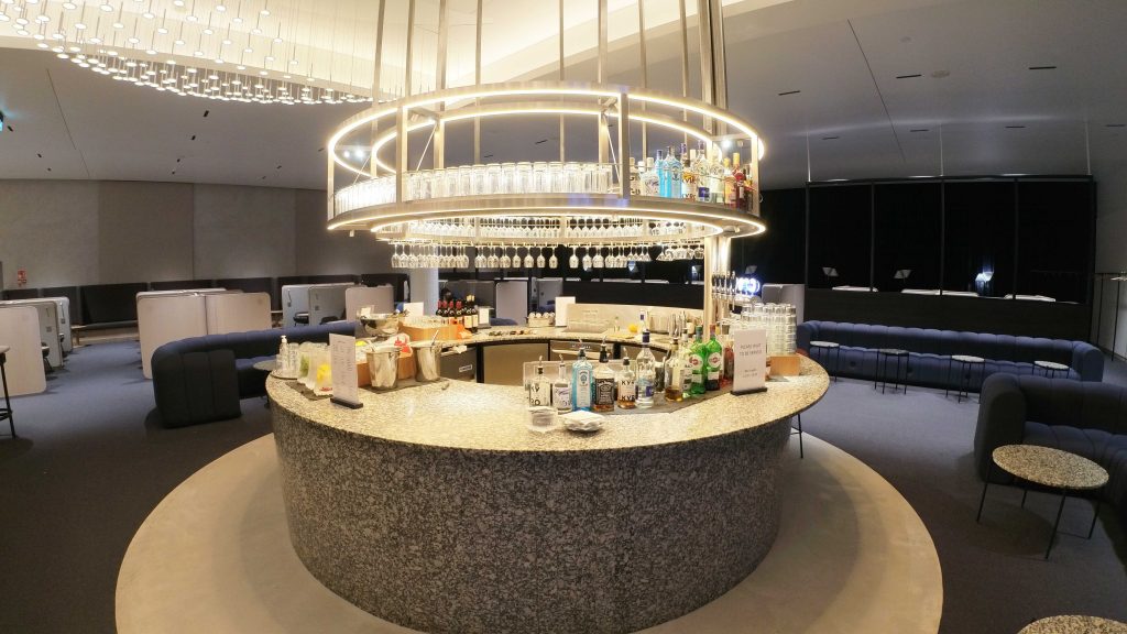 After a long walk past all the various lounges and seating options, toward the back of the lounge is the feature bar, fully stocked with a bartender and offering signature cocktails. The bar was surrounded by couches, tables and chairs to allow you to completely relax with a drink.