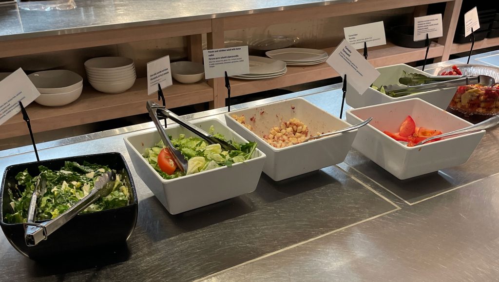 The open kitchen allows you to see the chef at work with self serve food available across the bench. The selection good and was more than enough for the amount of people in the lounge at the current time. Options featuring nordic ingredients including potato and reindeer salad, make your own salad, pasta rigatoni, vegetable stew, meatballs and fruit. There was also a drink station with a selection of self serve wine and soft drink. Any additional drinks could be ordered from the bar.