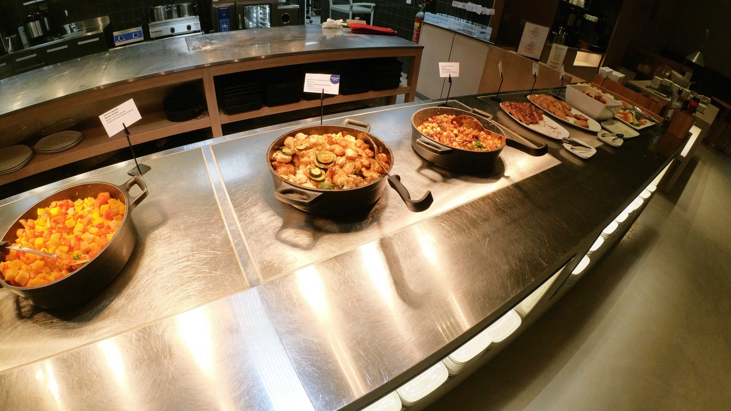 The open kitchen allows you to see the chef at work with self serve food available across the bench. The selection good and was more than enough for the amount of people in the lounge at the current time. Options featuring nordic ingredients including potato and reindeer salad, make your own salad, pasta rigatoni, vegetable stew, meatballs and fruit. There was also a drink station with a selection of self serve wine and soft drink. Any additional drinks could be ordered from the bar.