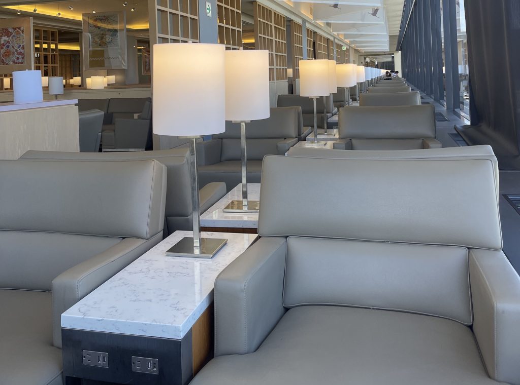 Before the lounge started to fill up as the morning progressed we were able to find a comfortable spot to sit and enjoy views over the tarmac. Charging ports were available in the tables beside the seats however the USB ports did not seem to be working when we tried charging our headphones and phone.