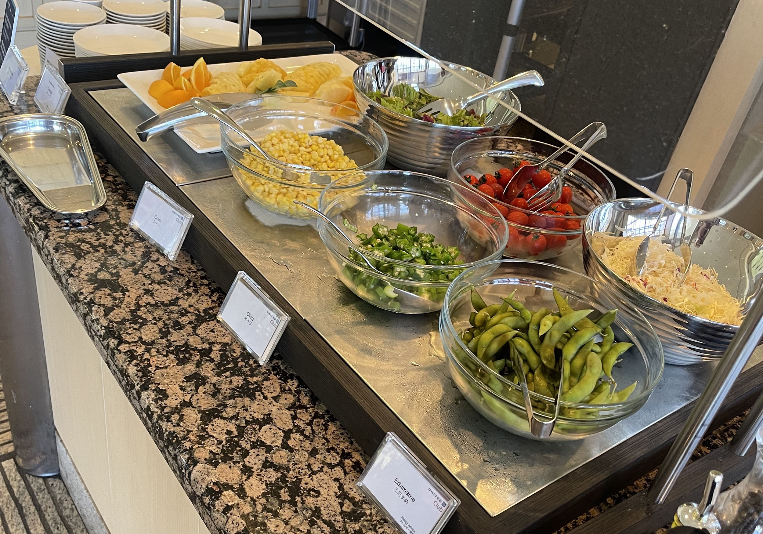 A plus to visiting the lounge in the morning was that there were only a few people in the lounge. A range of breakfast options was available including a selection of traditional Western breakfast such as eggs, continental breakfast with cereal, yogurts and fruits and a Japanese option of fish and rice. Considering the vast size of the lounge we would have liked to see a few more options on show for breakfast. The coffee provided was good while the area was clean and comfortable.