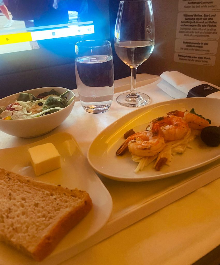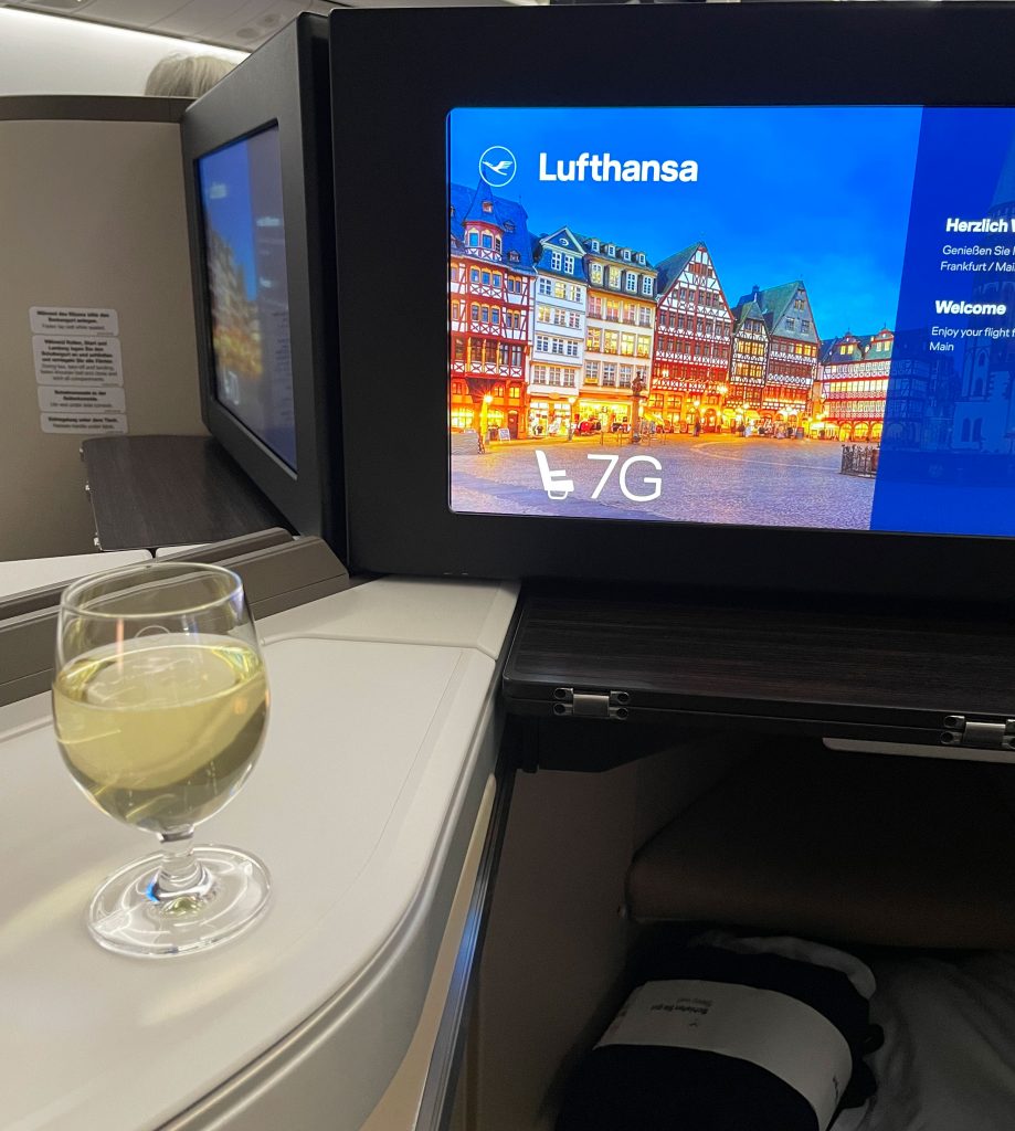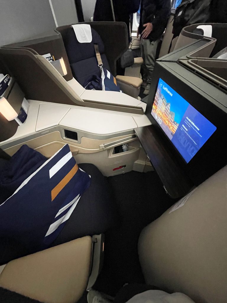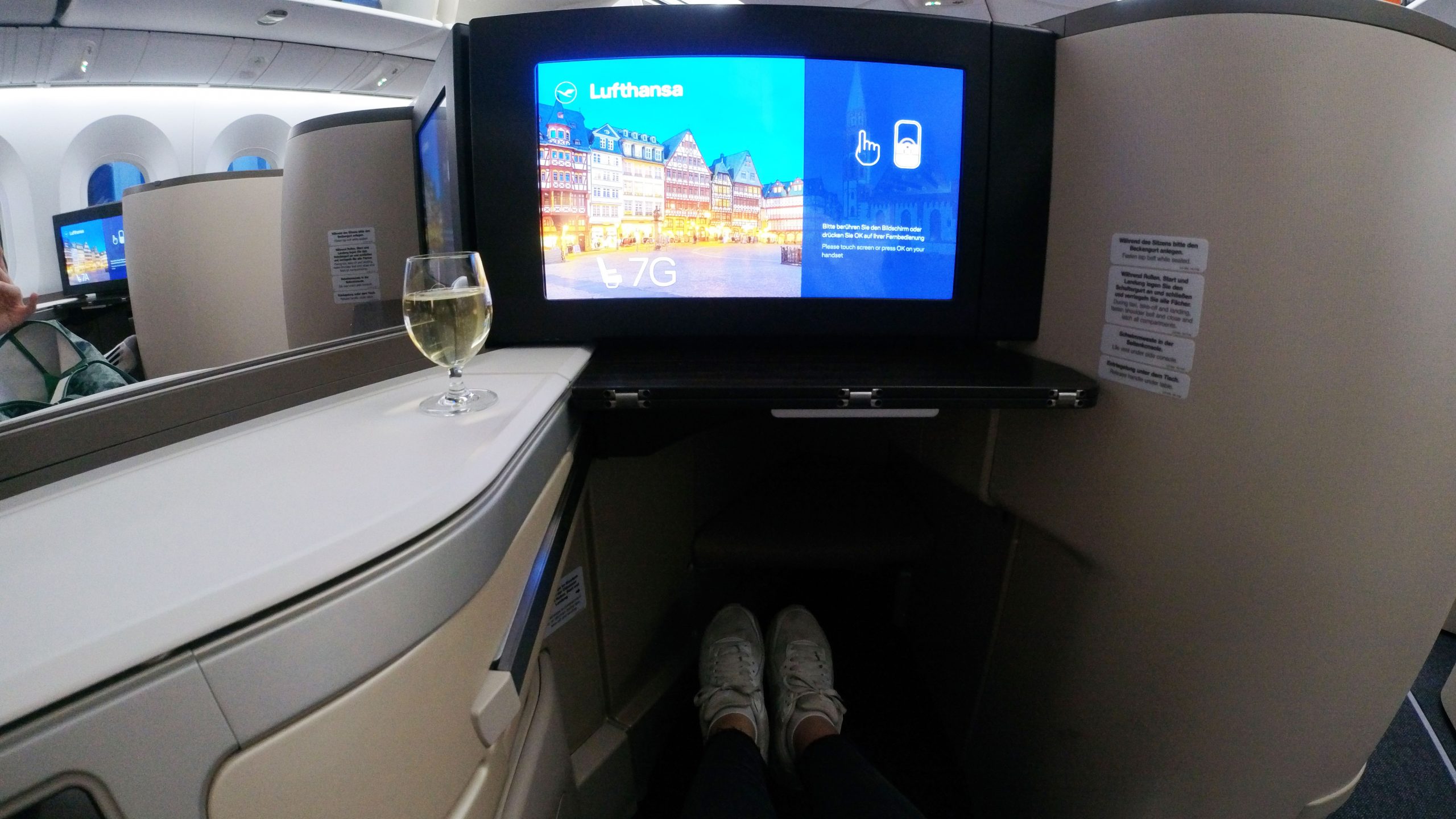 The updated seat design represents a huge improvement for Lufthansa’s new Boeing 787 Business Class. The service was friendly and quality of food on the flight was good.