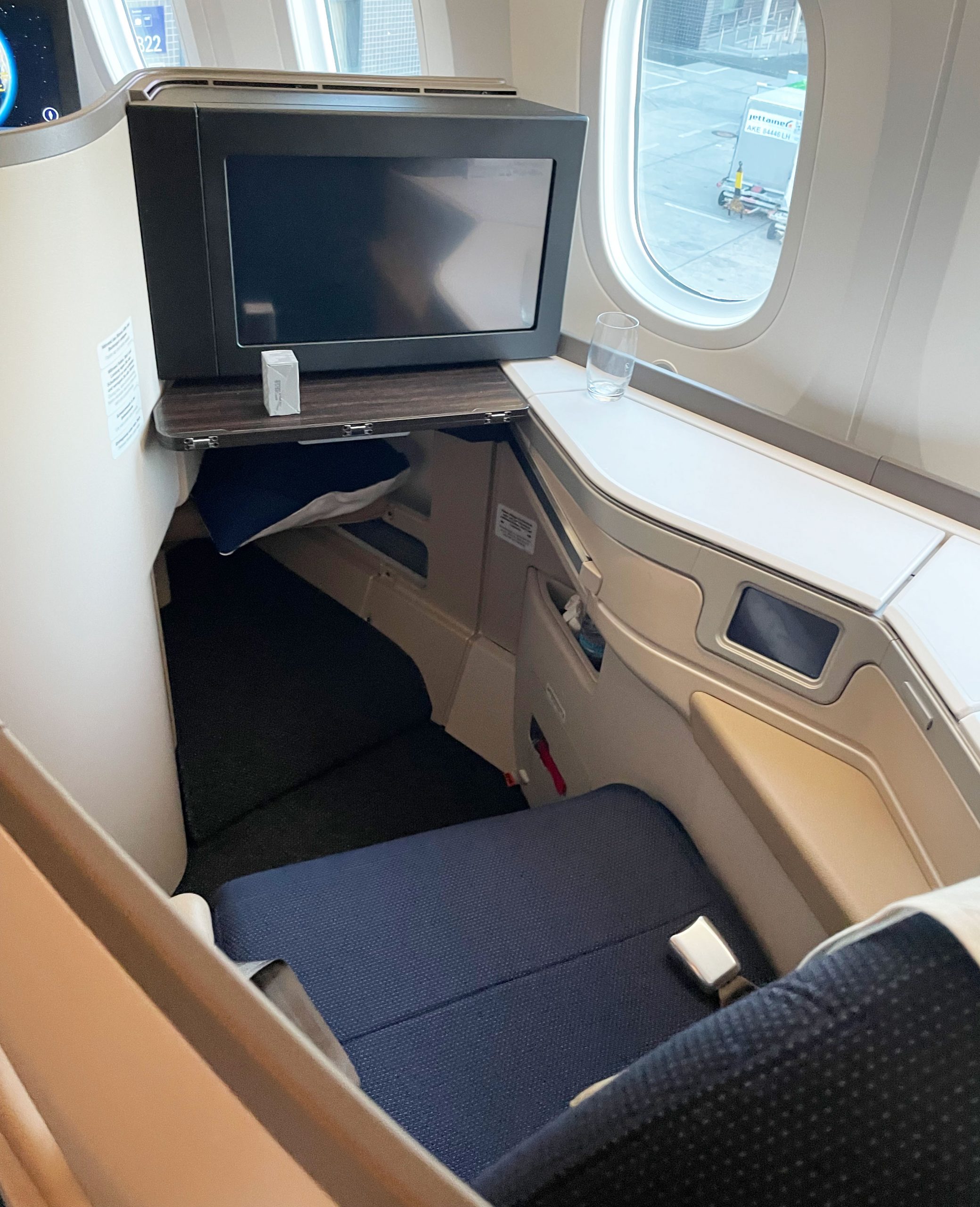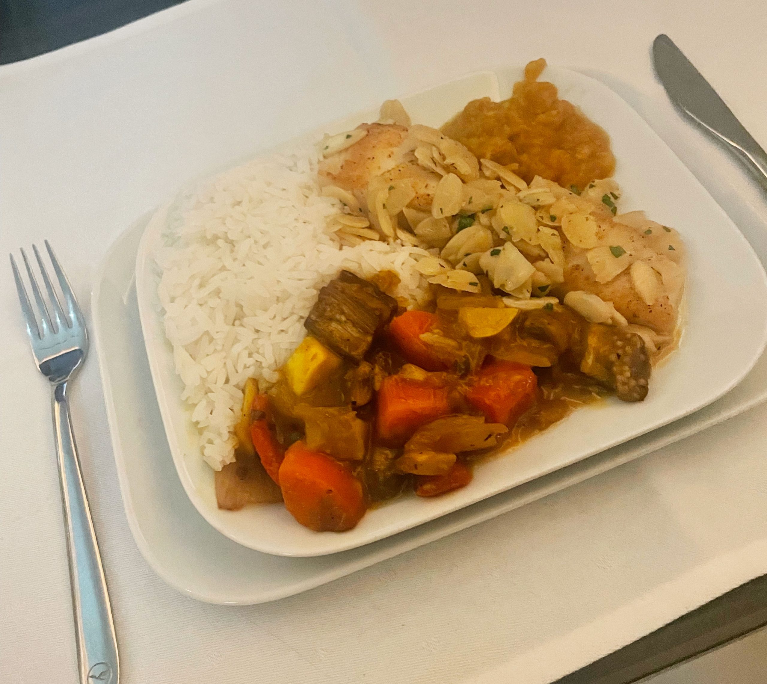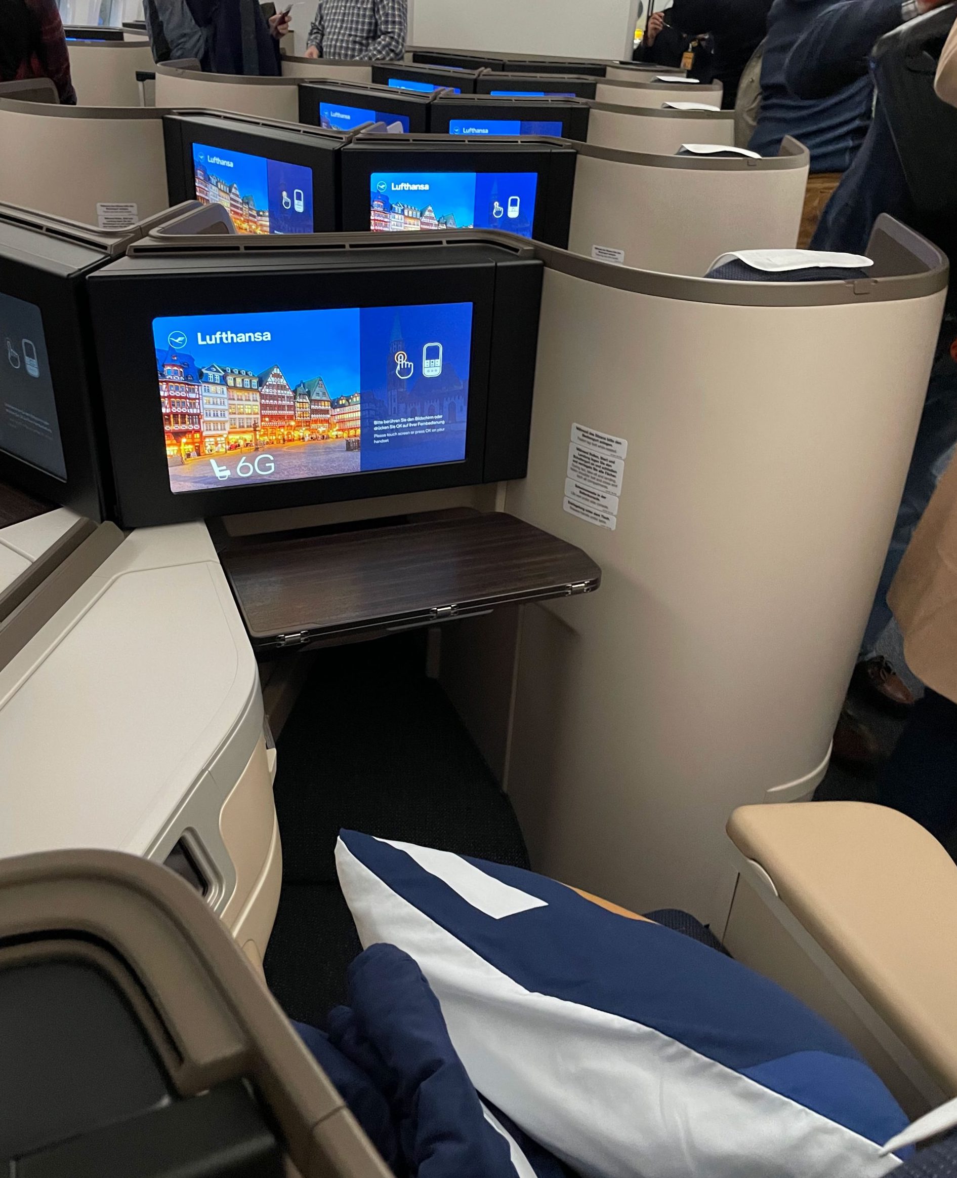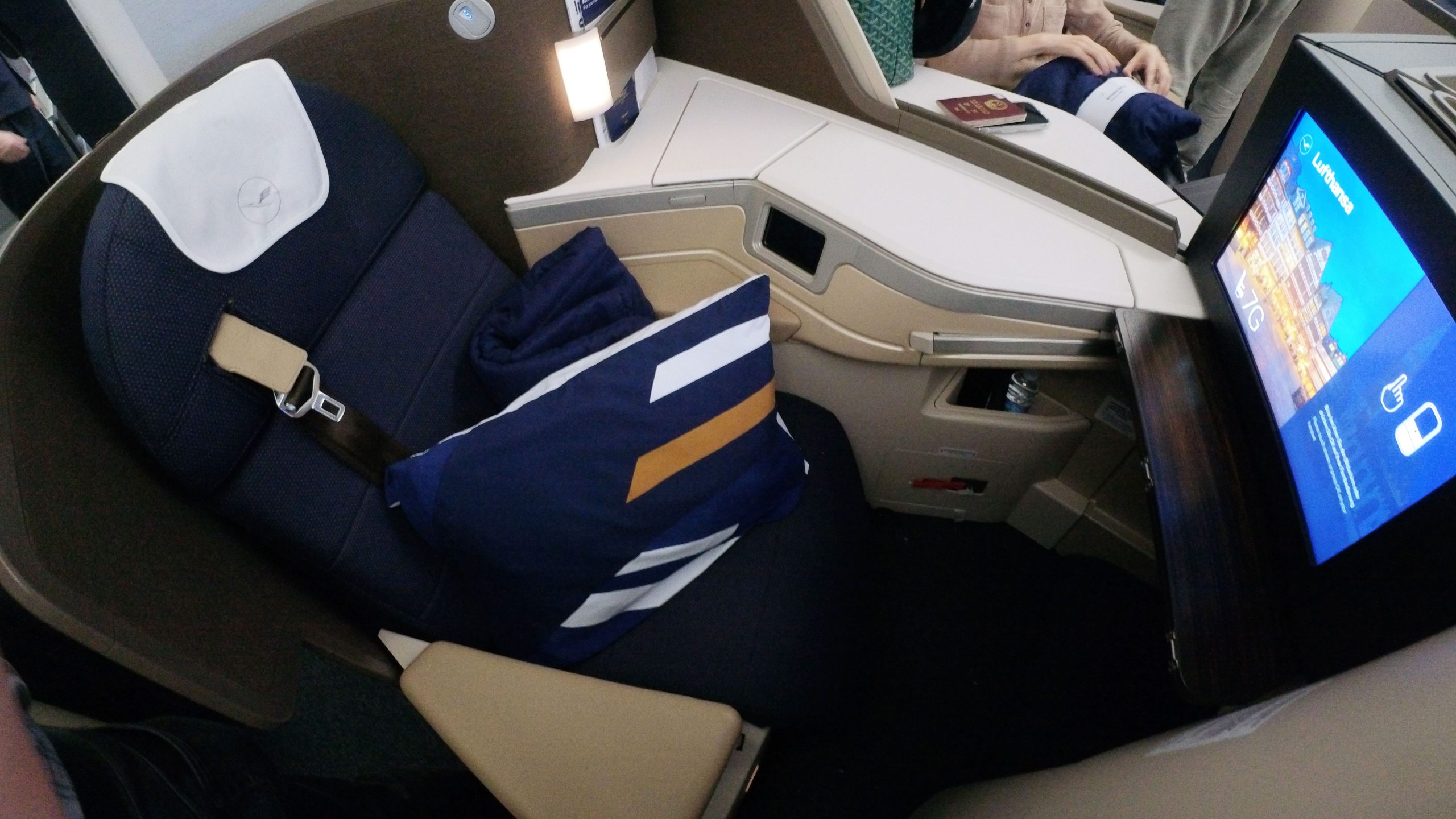 The updated seat design represents a huge improvement for Lufthansa’s new Boeing 787 Business Class. The service was friendly and quality of food on the flight was good.