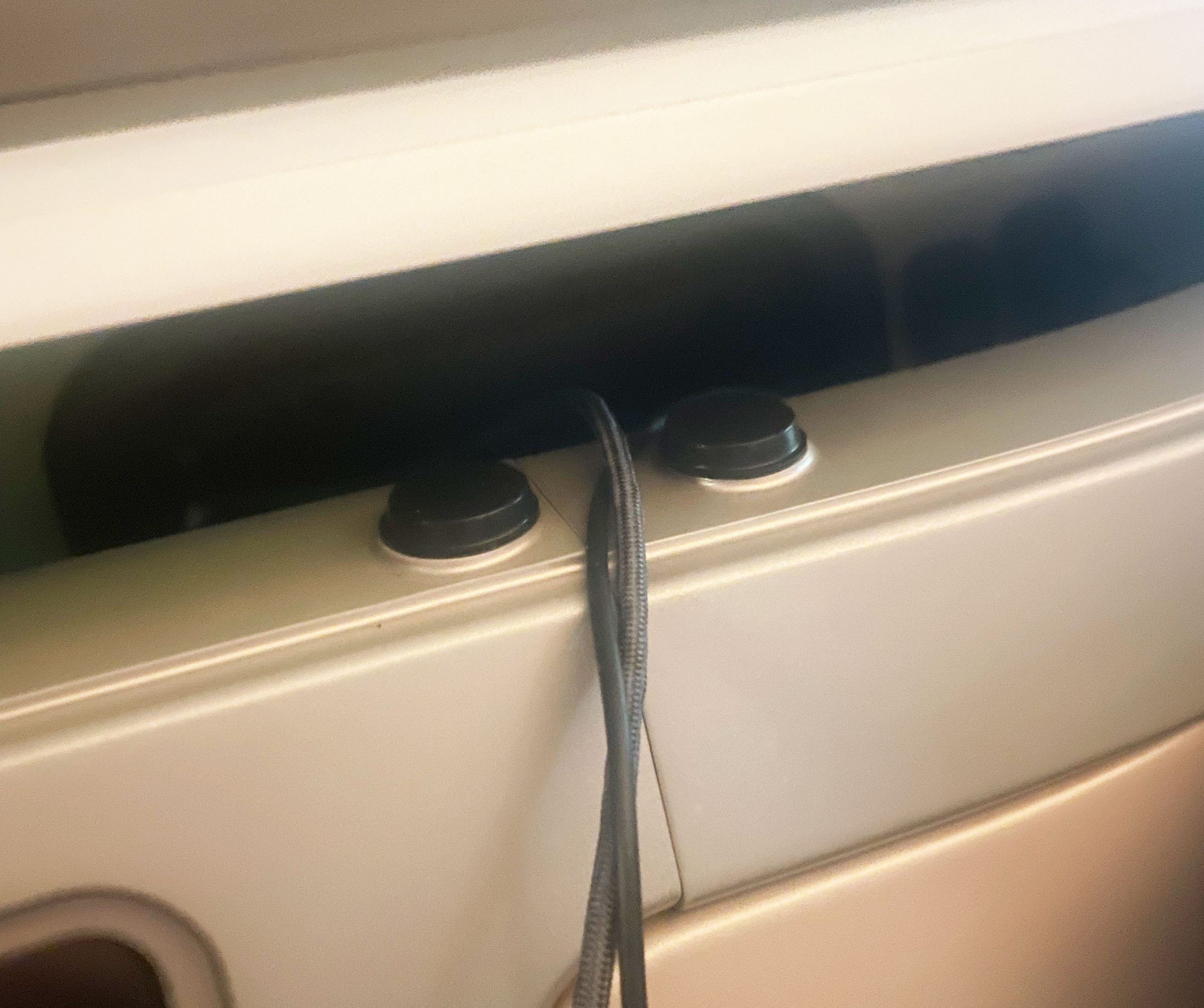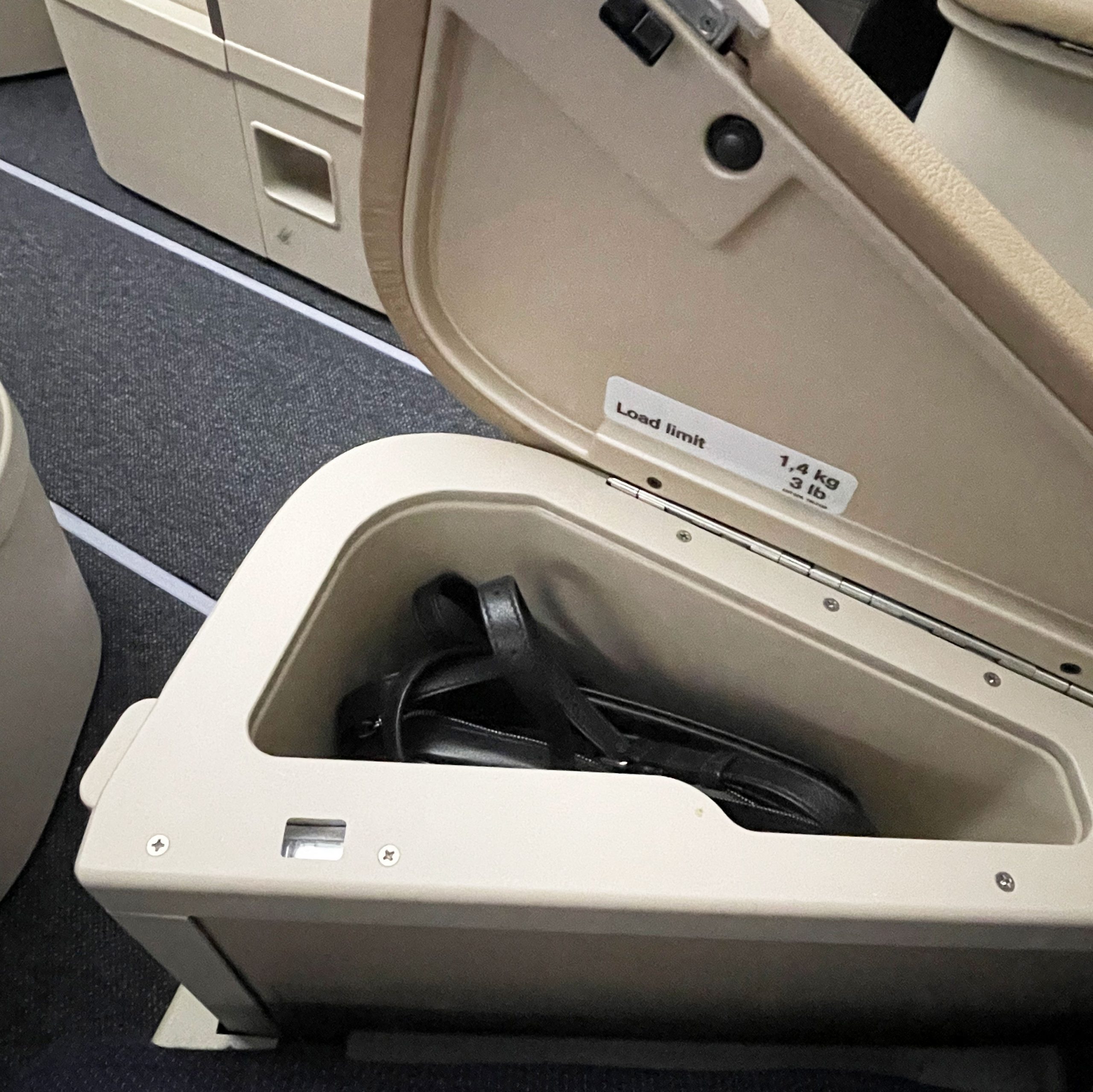 The noise cancelling headphones provided were some of the best I’ve used and made a significant difference in blocking out outside noise. The cord plugs nicely into the storage section under the bench making it very accessible but also kept it out of the way during the flight.