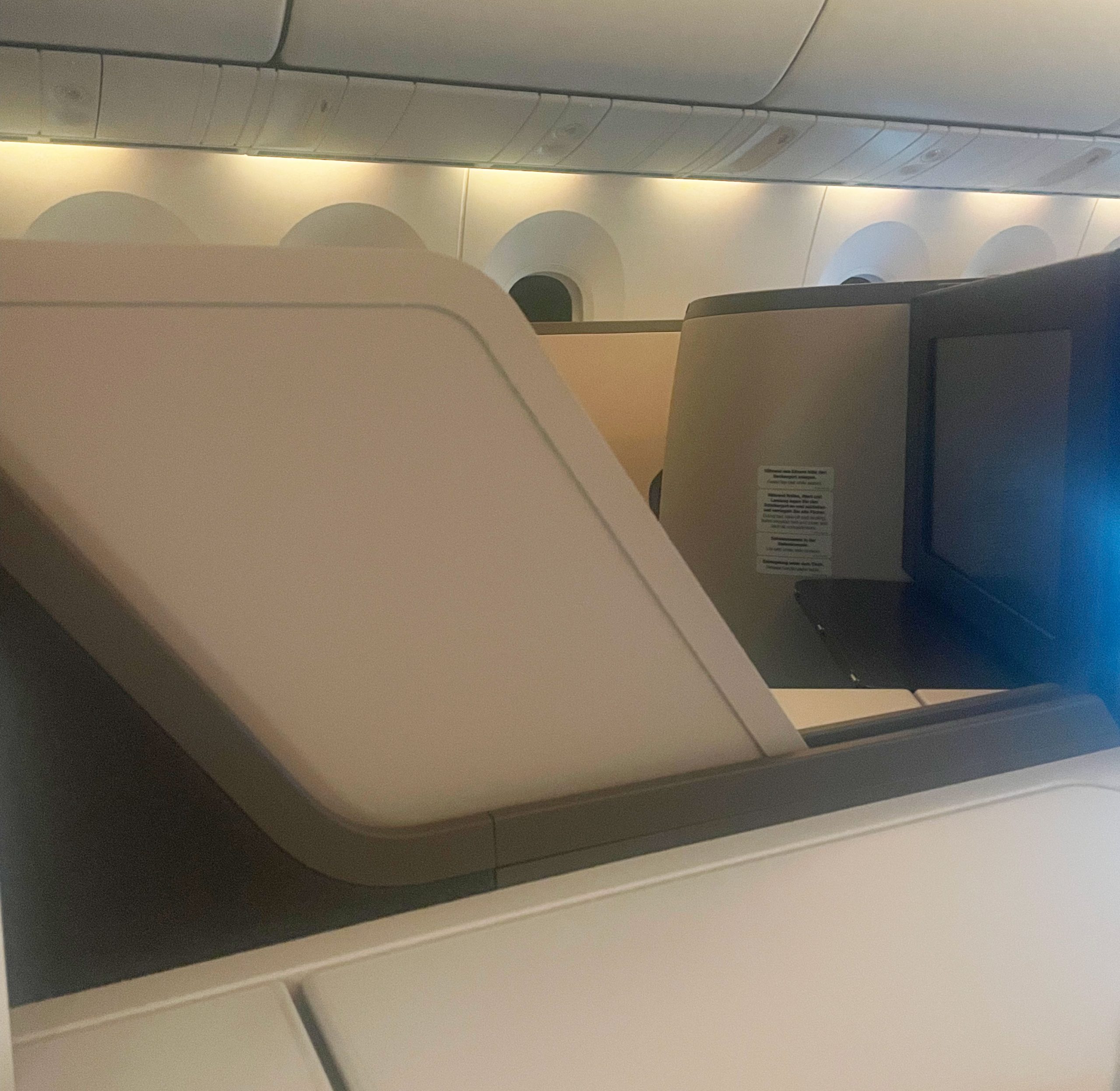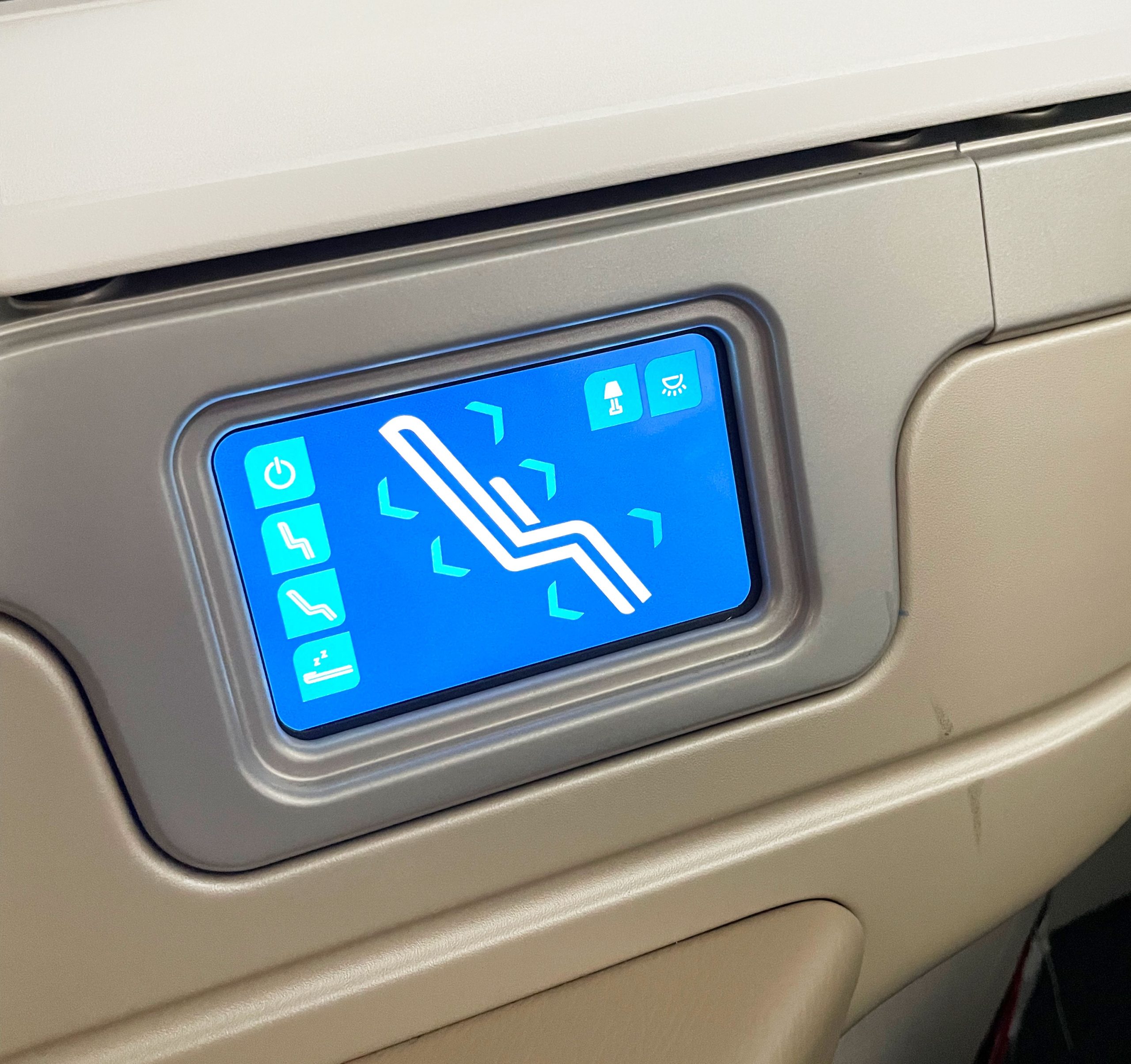 Once finished eating, I used the control panel on the side to lower the seat into a fully flat bed. The light from the control panel was nice and bright to read, however once turned off gave enough darkness for you to sleep. The bed was slightly narrow but allowed enough space for me to move through the flight.