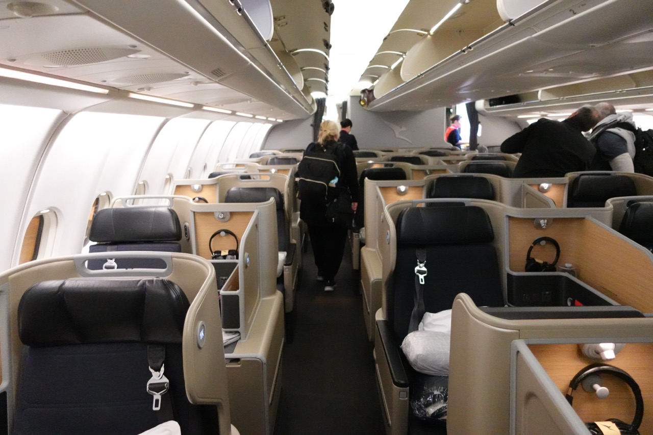 Once boarding began it was a quick process thanks to priority boarding for all business class passengers. The Qantas Business Class cabin is a 1-2-1 layout, with alternating seats to accommodate the footwell for the fully flat bed. We are seeing the 1-2-1 become a very regular configuration for long-haul international flights, with passengers become accustom to having direct aisle access for all seats.