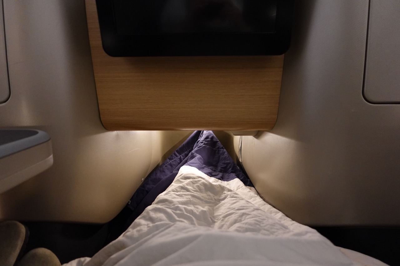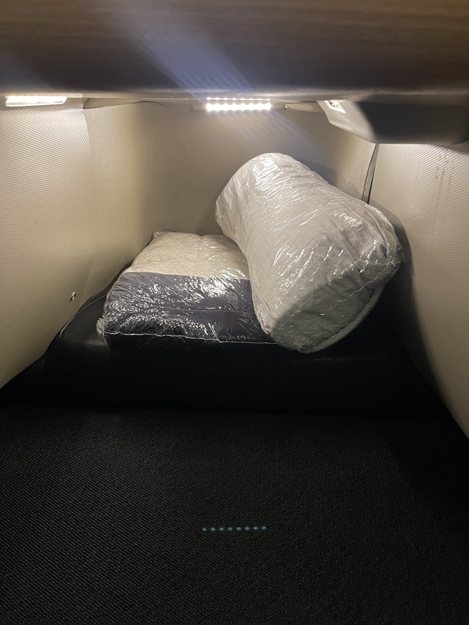 With such a large portion of the guest electing to skip meal service the cabin crew came and offered to put everyone’s mattress on their seat. This was a nice touch for those that wanted help, but it was easy to slip over the seat and secured with the elastic.