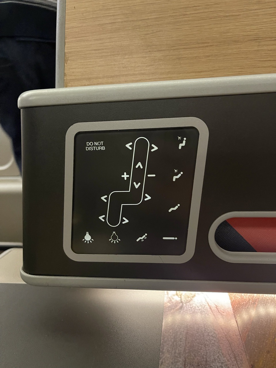 The controls on the Qantas Business Class seat were easy to use, being in a diagram formation. The footwell was wide, which allowed us to move around during the flight and not feel too constricted while the seat was reasonably comfortable. The mattress topper increased the padding, making it a comfortable sleep.