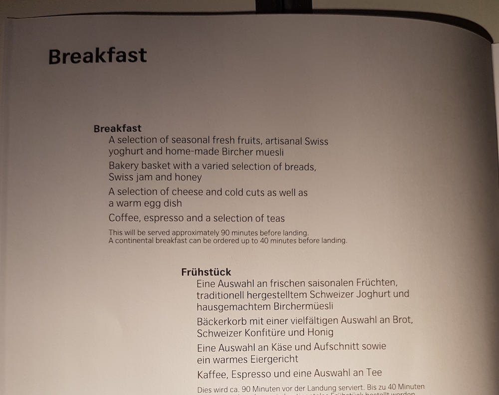To finish the flight we were served a tasty breakfast featuring Swiss cheese, jams and cold meats.